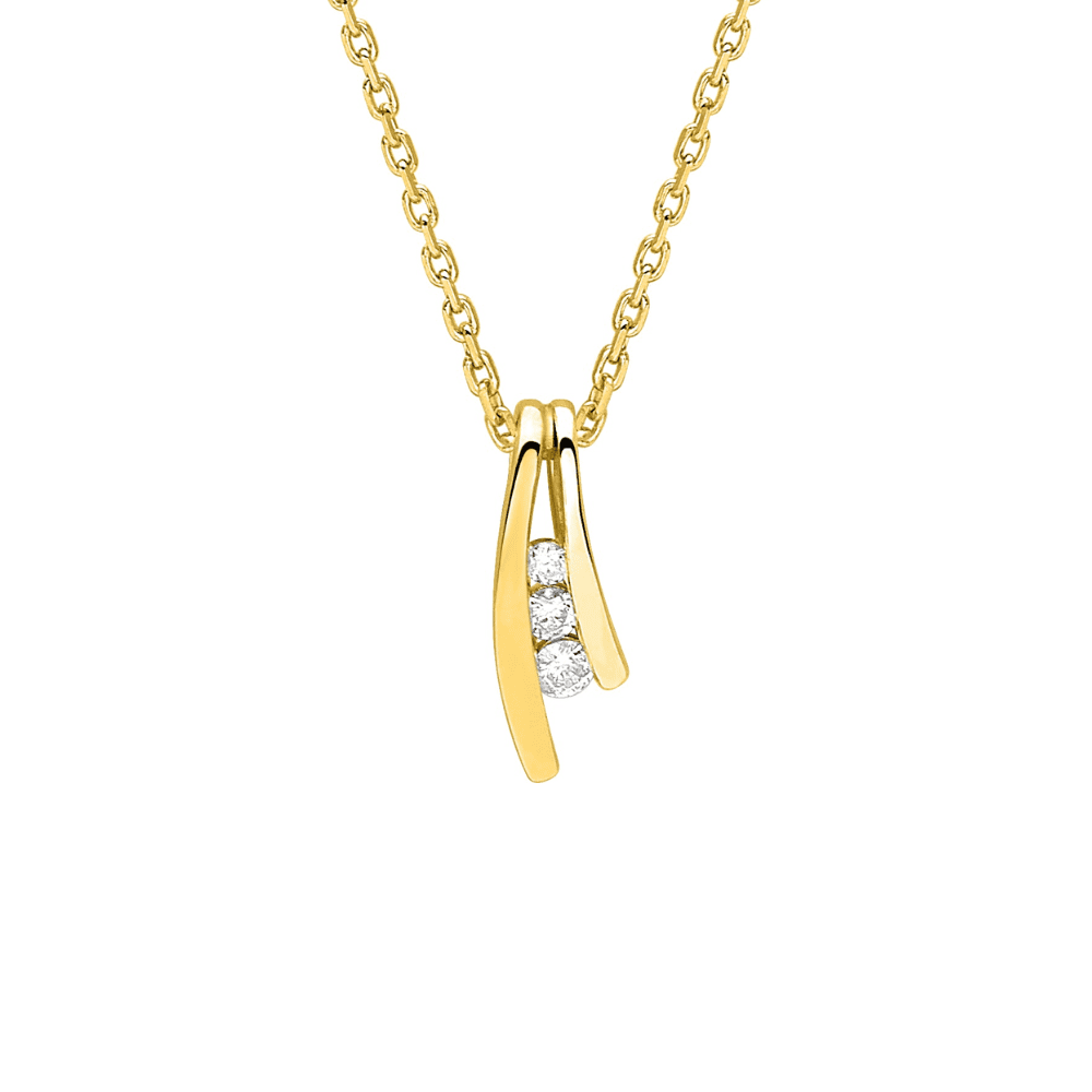 Collier or jaune & pendentif 3 diamants 0.08ct