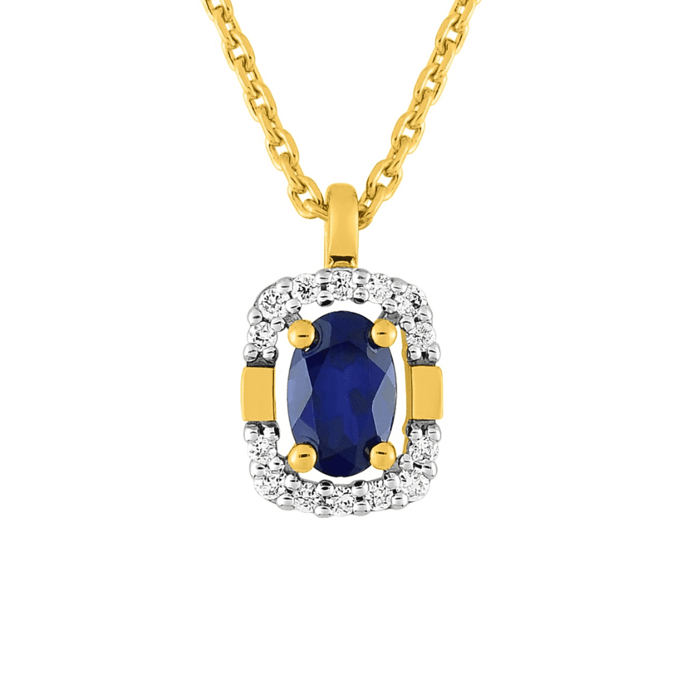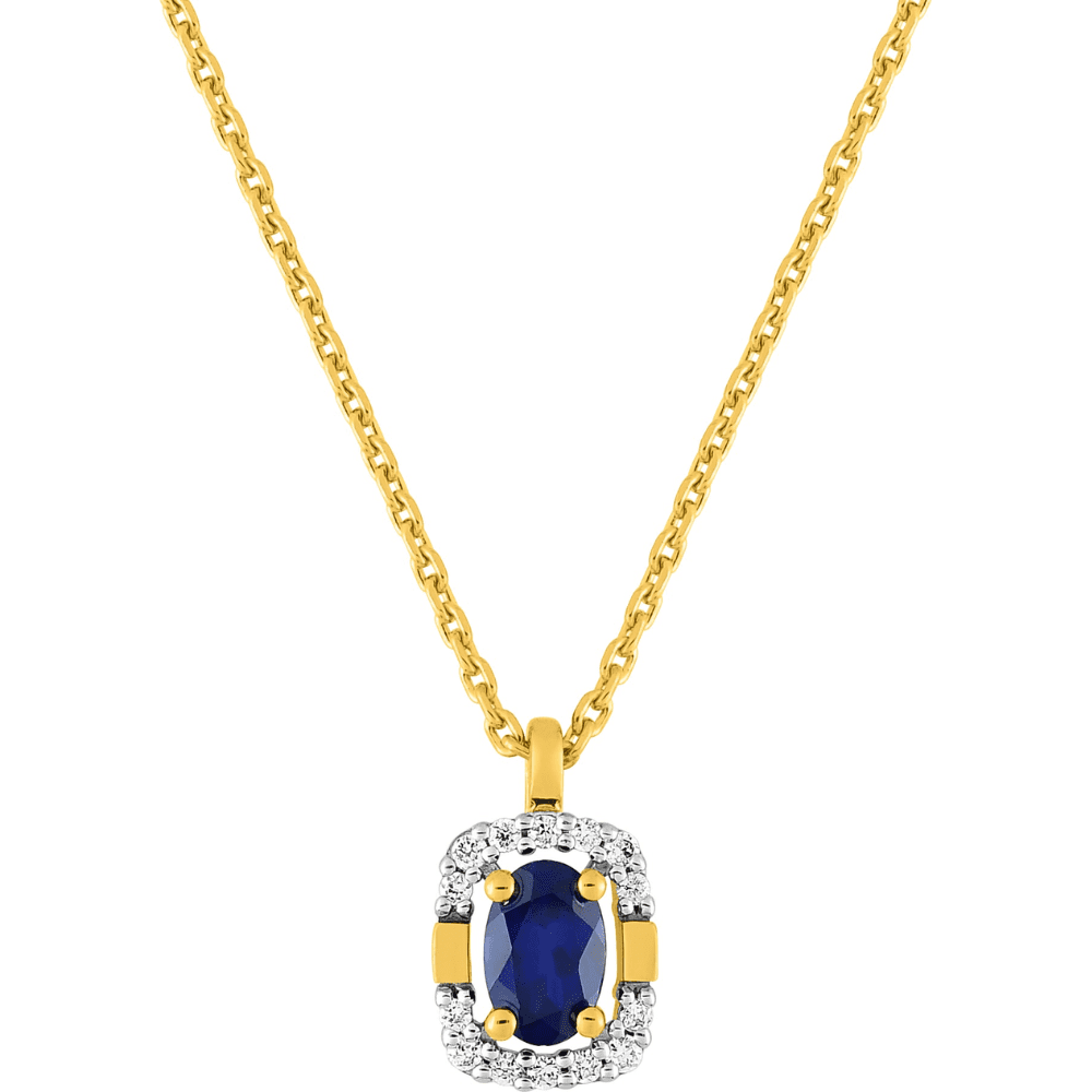 Collier Camille en or jaune, pendentif saphir ovale et diamants