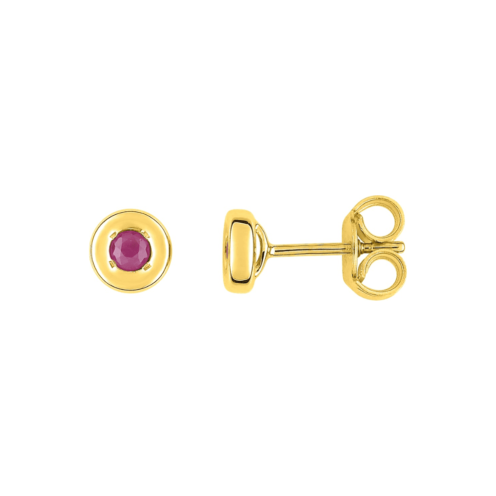 Puces d’Oreilles Rondes Rubis Or Jaune