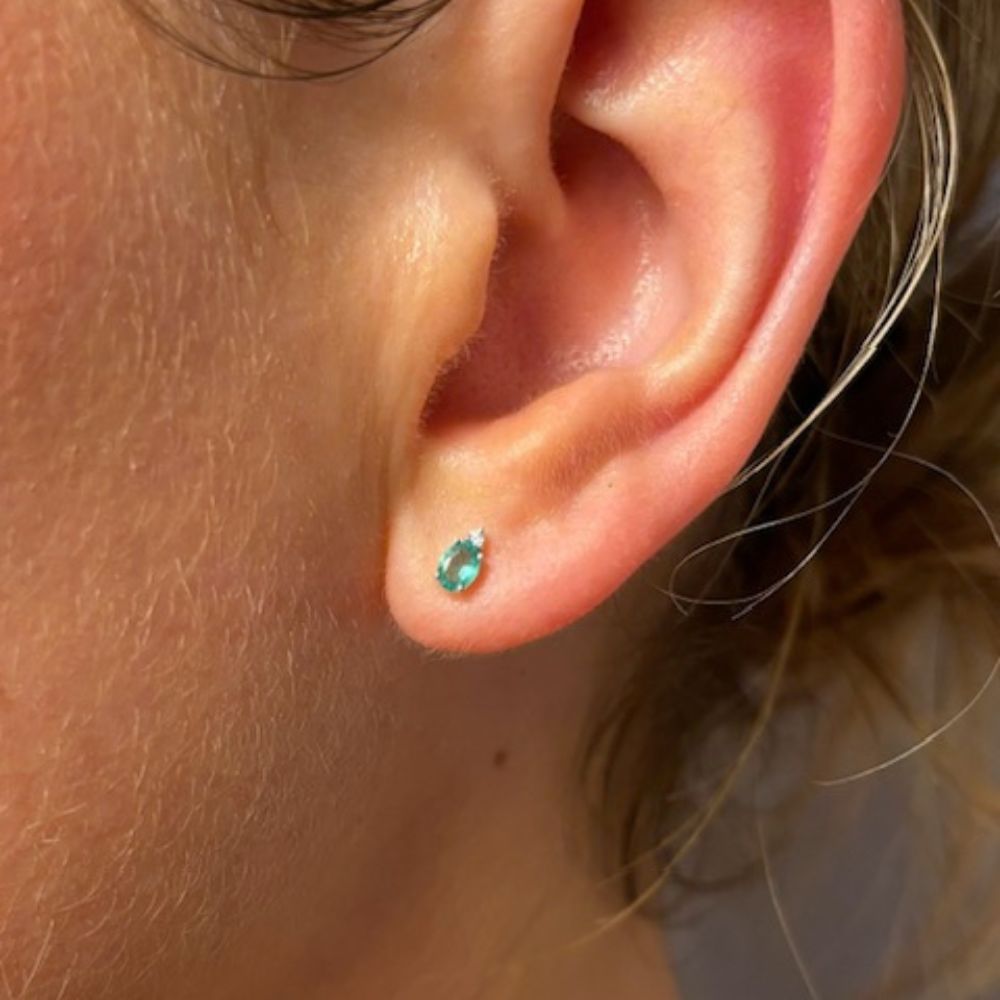 Puces d’oreilles en or bicolore 18 carats et émeraude