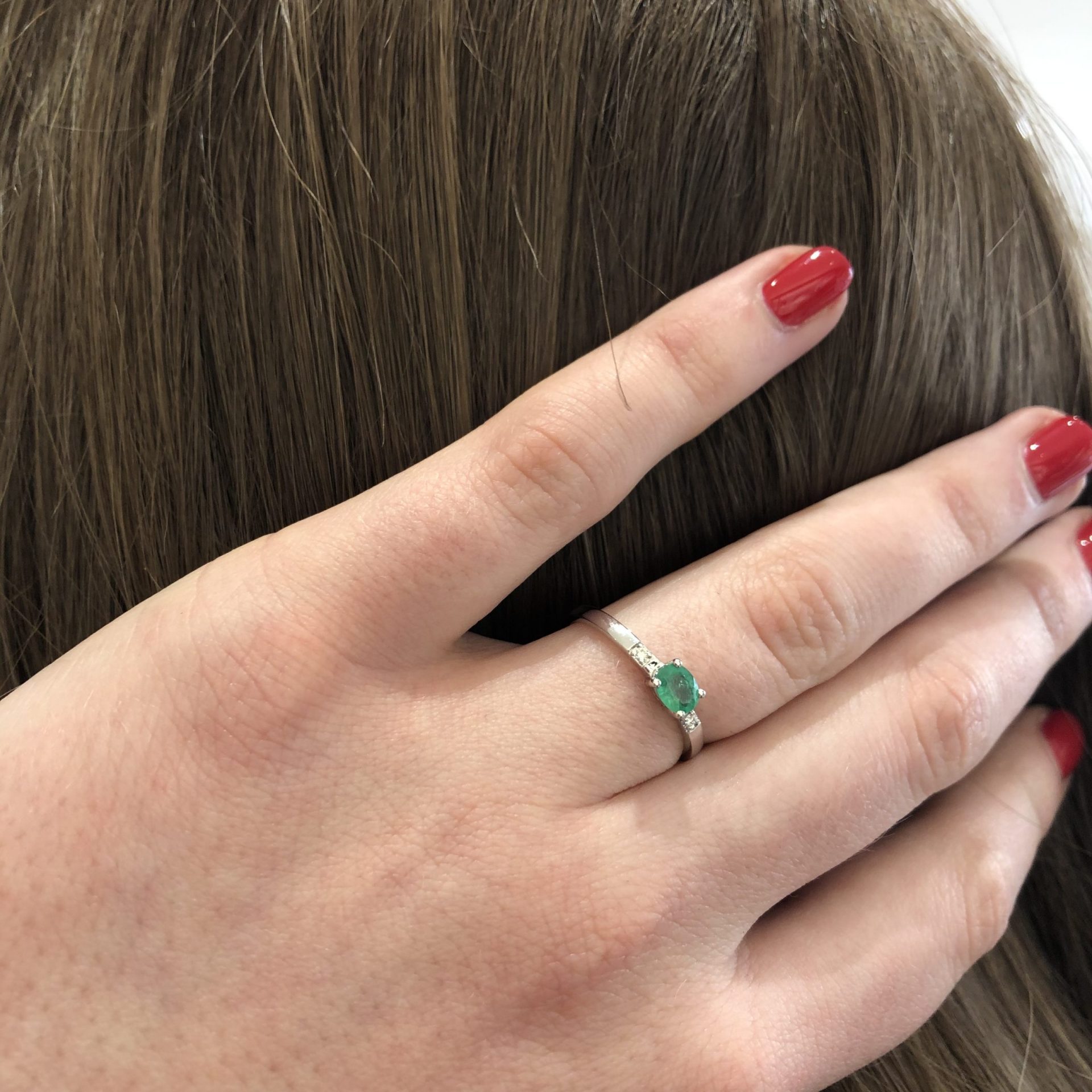1 emeraude ovale 0,40ct serti 4 griffes et 2 diamants 0.02ct