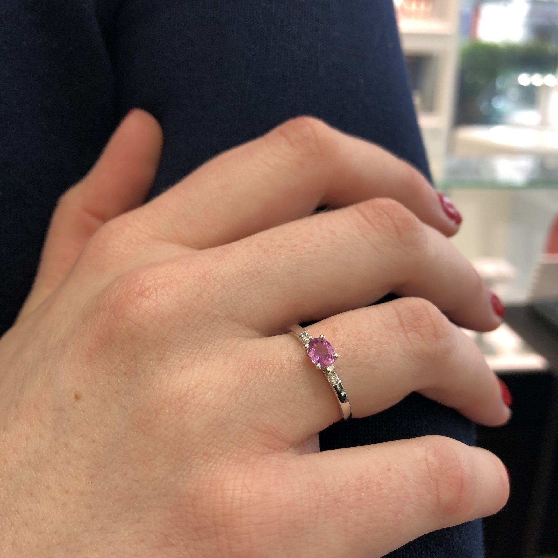 1 saphir rose ovale 0,50ct serti 4 griffes et 2 diamants 0.02ct