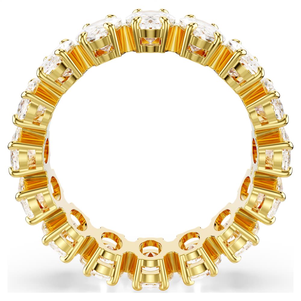 Avec son cercle complet de Swarovski Zirconia taillés en ovale, cette bague Matrix se distingue par son allure luxueuse et contemporaine. Chaque pierre est minutieusement sertie dans un élégant sertissage griffes, sublimé par une dorure à l’or 18 carats (750/1000), pour un éclat continu et une lumière exceptionnelle à chaque mouvement.