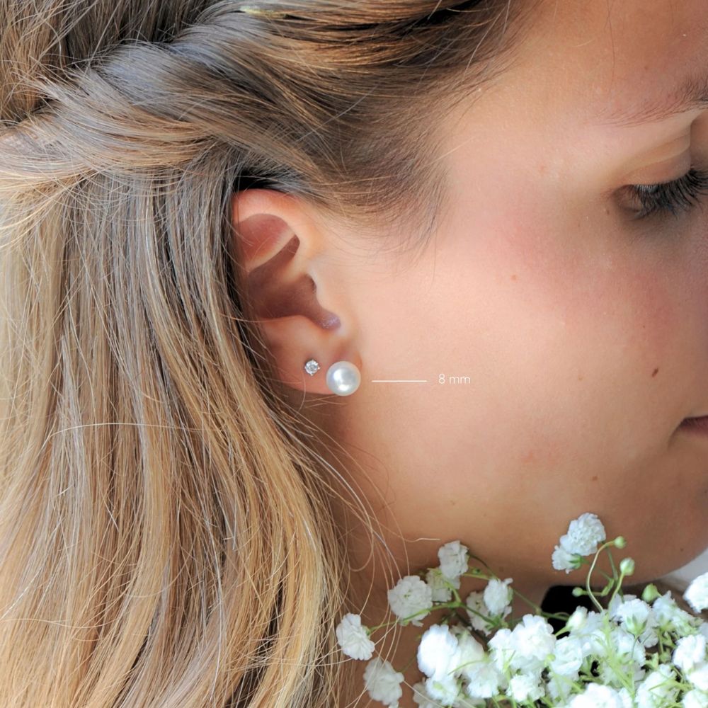 Ces boucles d’oreilles Elsa Lee Pureté sont composées de 2 perles blanches de 6mm ou 8mm de diamètre.