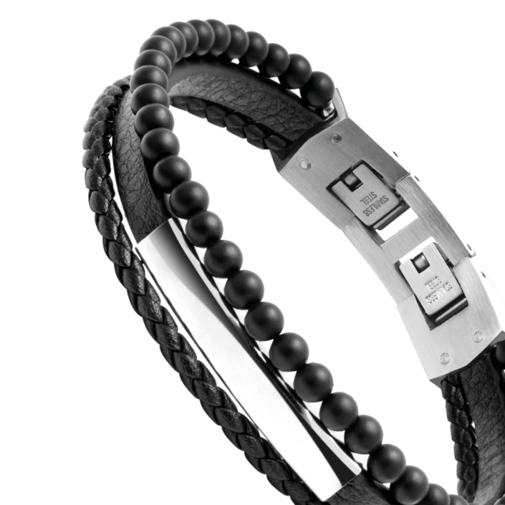 Bracelet pour homme en cuir et agates noires Rochet Yale