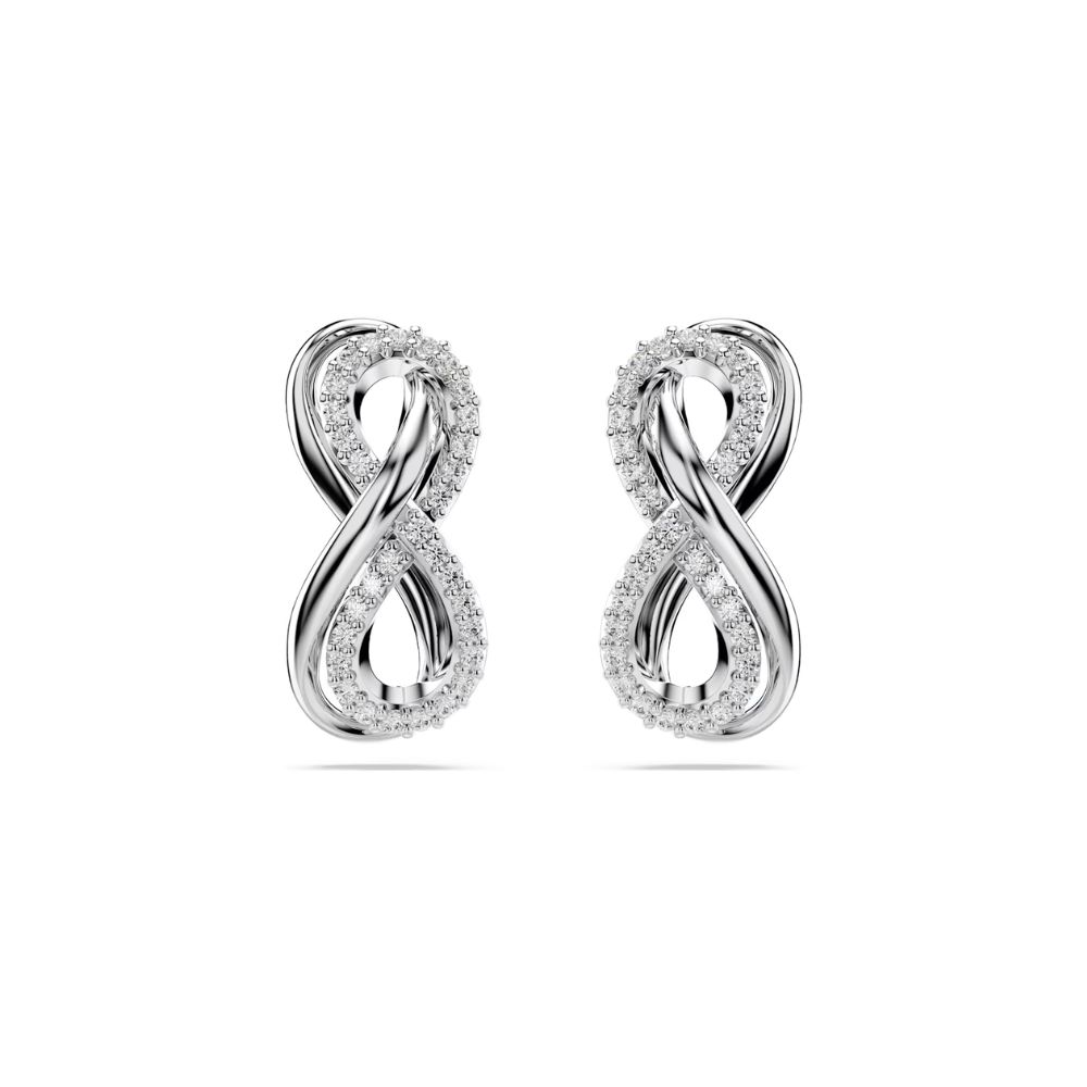 Les boucles d’oreilles Hyperbola, en métal rhodié, sont conçues pour un usage quotidien et une affection durable. Leur design en forme de symbole de l’infini est orné de Swarovski Zirconia incolores