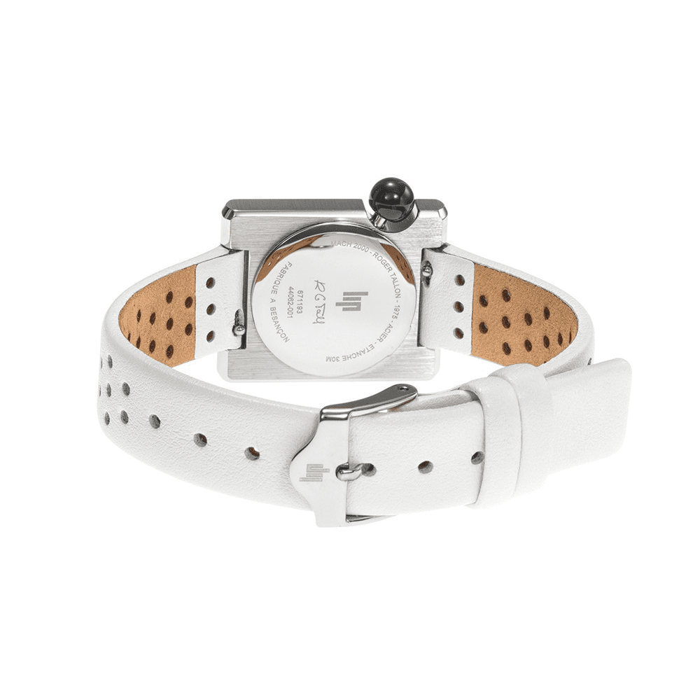 Le bracelet en cuir perforé blanc complète parfaitement le design de cette montre. Non seulement il apporte une touche de fraîcheur et de modernité, mais il offre également un confort optimal tout au long de la journée. La montre femme Lip Mach 2000 Mini Square est le choix idéal pour les femmes qui apprécient l’alliance parfaite entre style et fonctionnalité. Son design rétro et sa fabrication de qualité en font un accessoire polyvalent, adapté aux tenues du quotidien ou aux occasions spéciales.