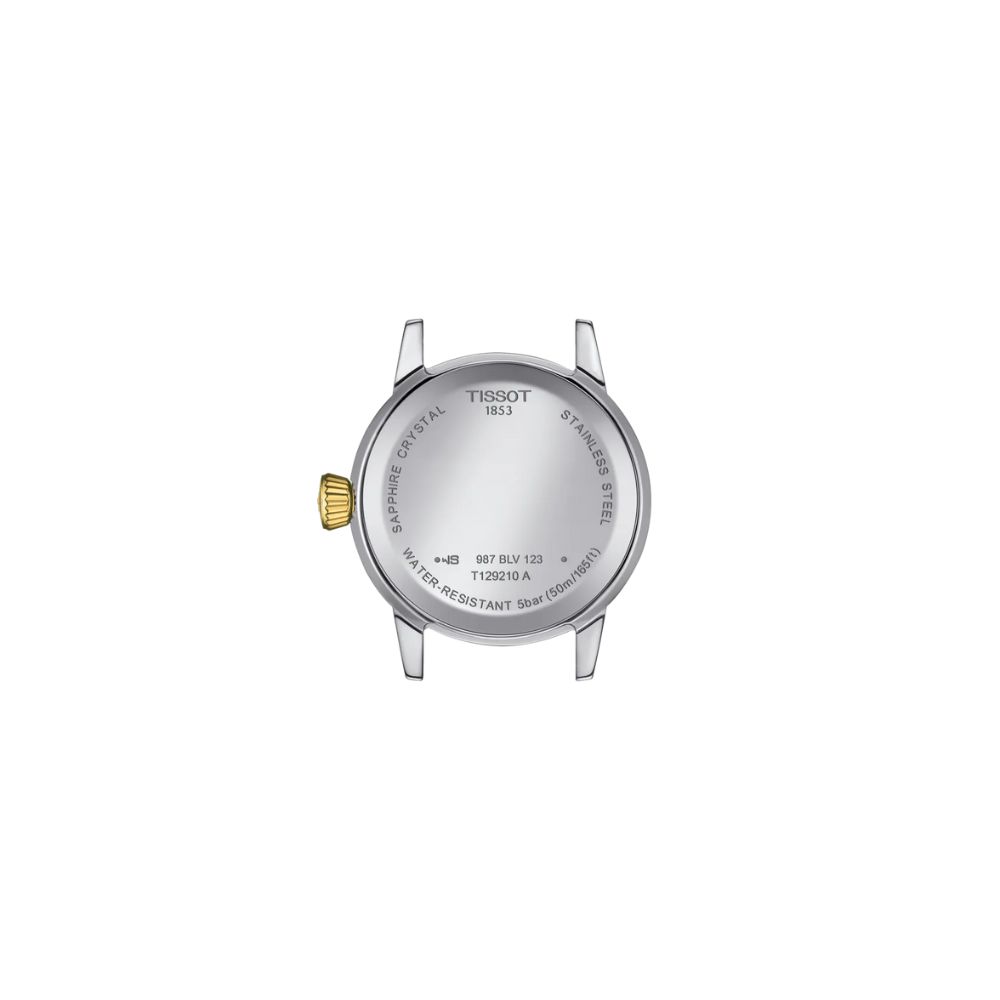 Étanche jusqu’à 5 ATM (50 mètres) et garantie 2 ans, la Tissot Classic Dream Lady bicolore doré est un choix idéal pour celles qui veulent une montre élégante, lumineuse et qualitative, parfaite au quotidien.