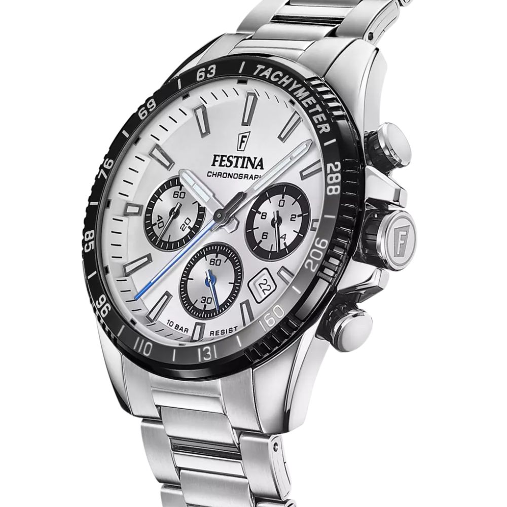 Découvrez la montre pour homme Festina Timeless Chronograph F20560/1, un garde-temps alliant sophistication et performance. Son boîtier en acier inoxydable, d’un diamètre de 45 mm et d’une épaisseur de 11,8 mm, incarne un équilibre parfait entre robustesse et élégance.