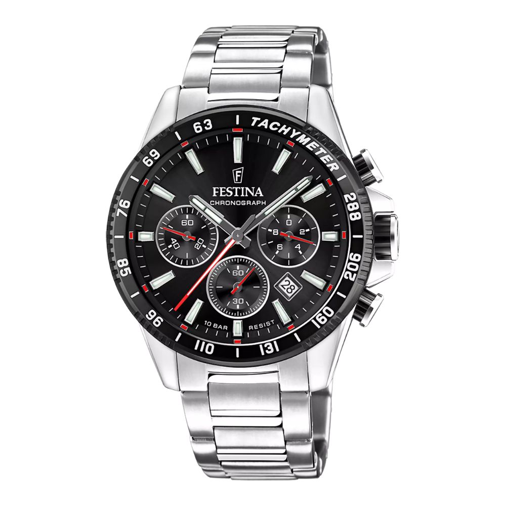 Montre homme Festina Timeless Chronograph – Cadran noir & bracelet Acier