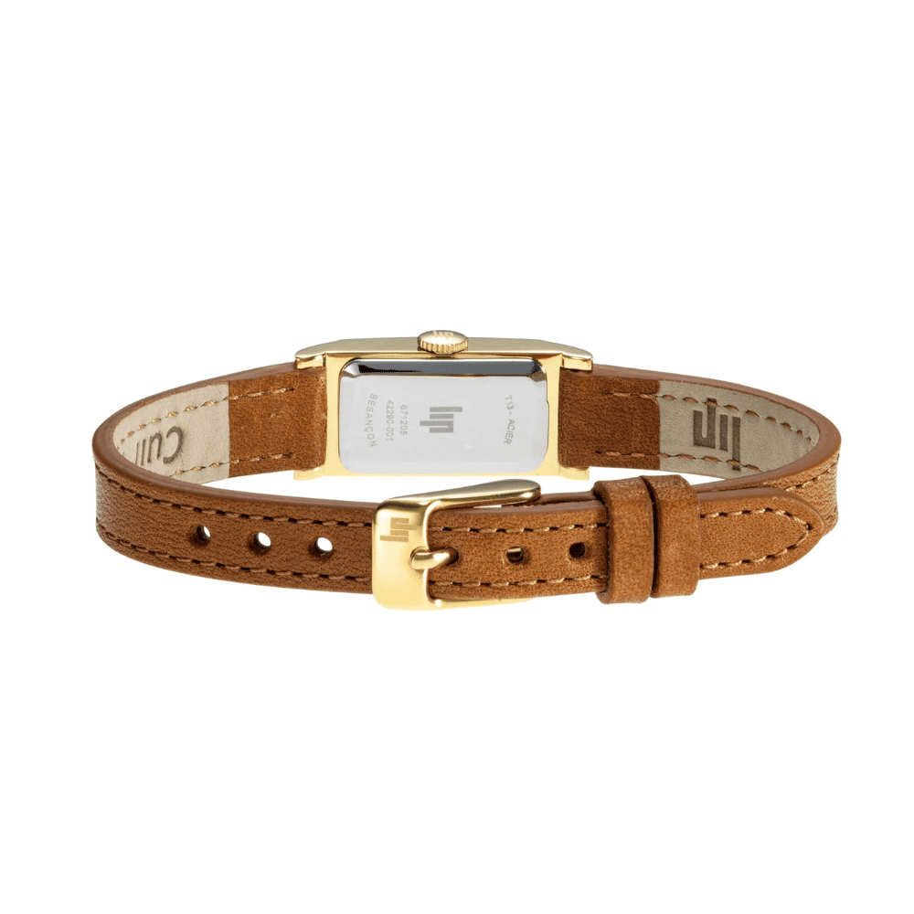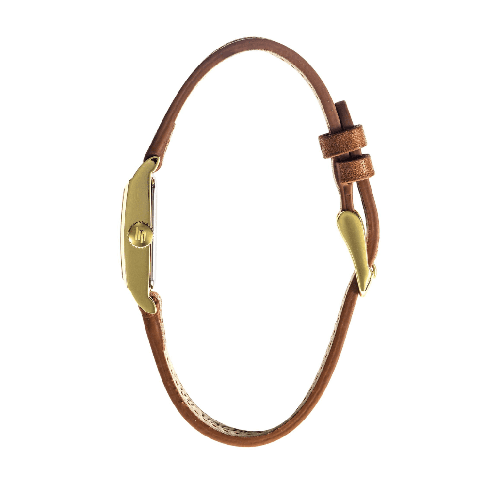 Montre femme Lip Churchill T13 Baguette dorée et cuir marron