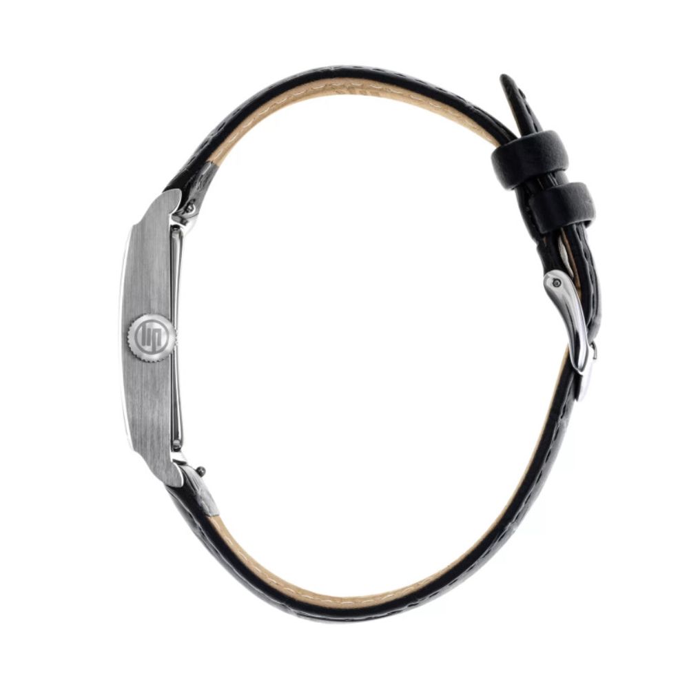 Animée par un mouvement quartz japonais précis, cette montre est protégée par un verre minéral et bénéficie d’une étanchéité 3 ATM. Le tout est complété par un bracelet en cuir noir façon crocodile, à la fois élégant et texturé.