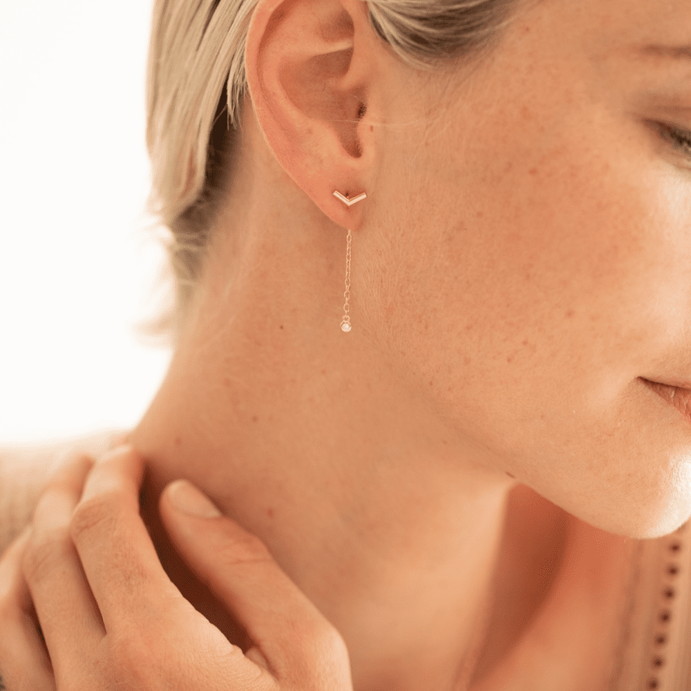 Découvrez ces pendants d’oreilles La Garçonne Diamant issue de la ligne Essentielle. Cette paire de boucles d’oreilles minimalistes est dotée d’une chaîne pendante au bout de laquelle est serti un magnifique diamant de 0.015 carats de qualité HSI. La boucle en forme de V affiche un look contemporain.