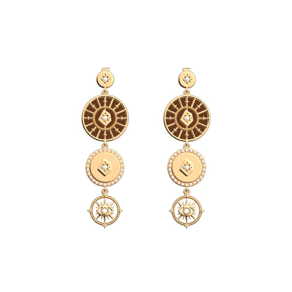 Apportez une touche céleste à votre style avec les boucles d’oreilles pendantes Les Georgettes Astrales en finition dorée.